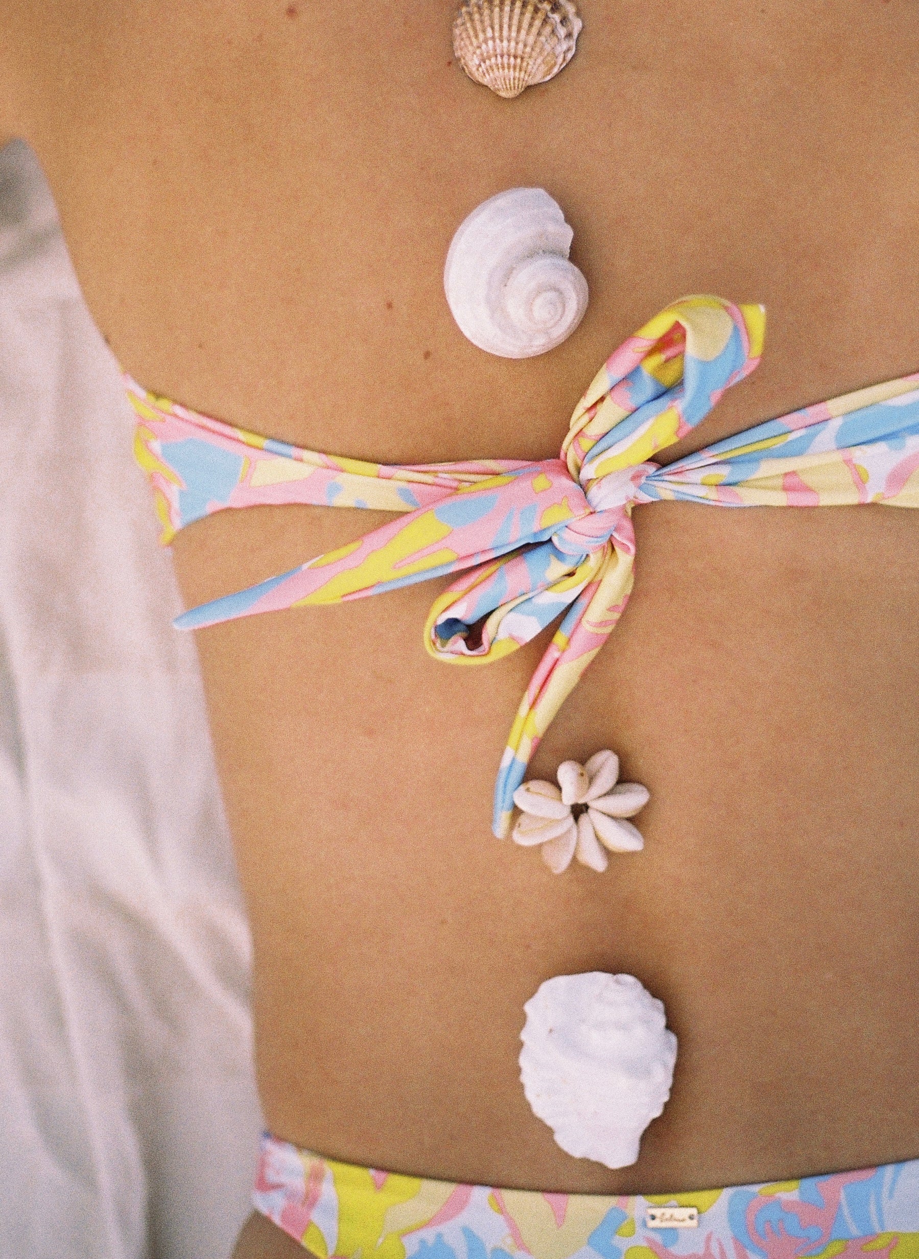 Bandeau design with adjustable tie up back.